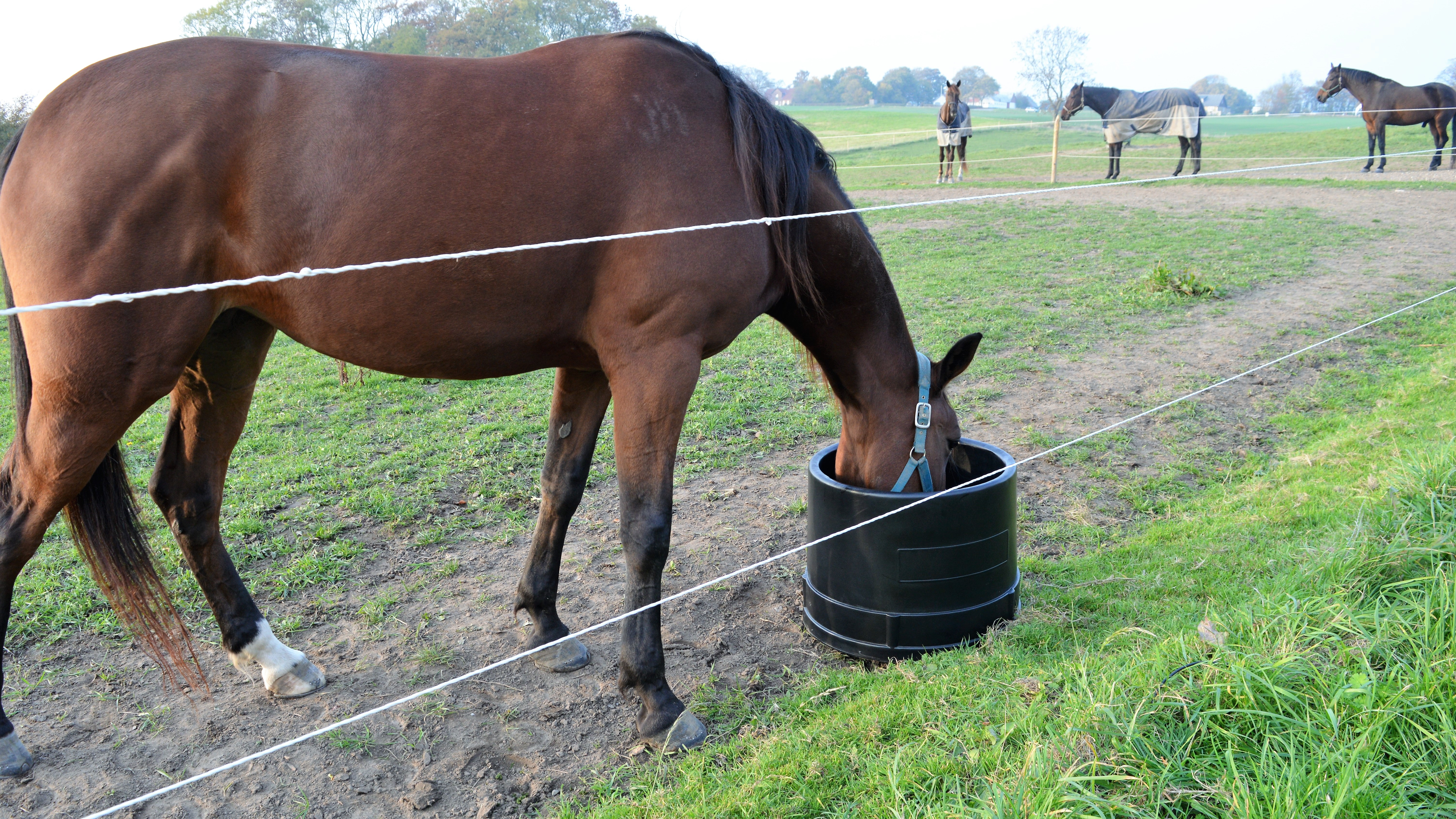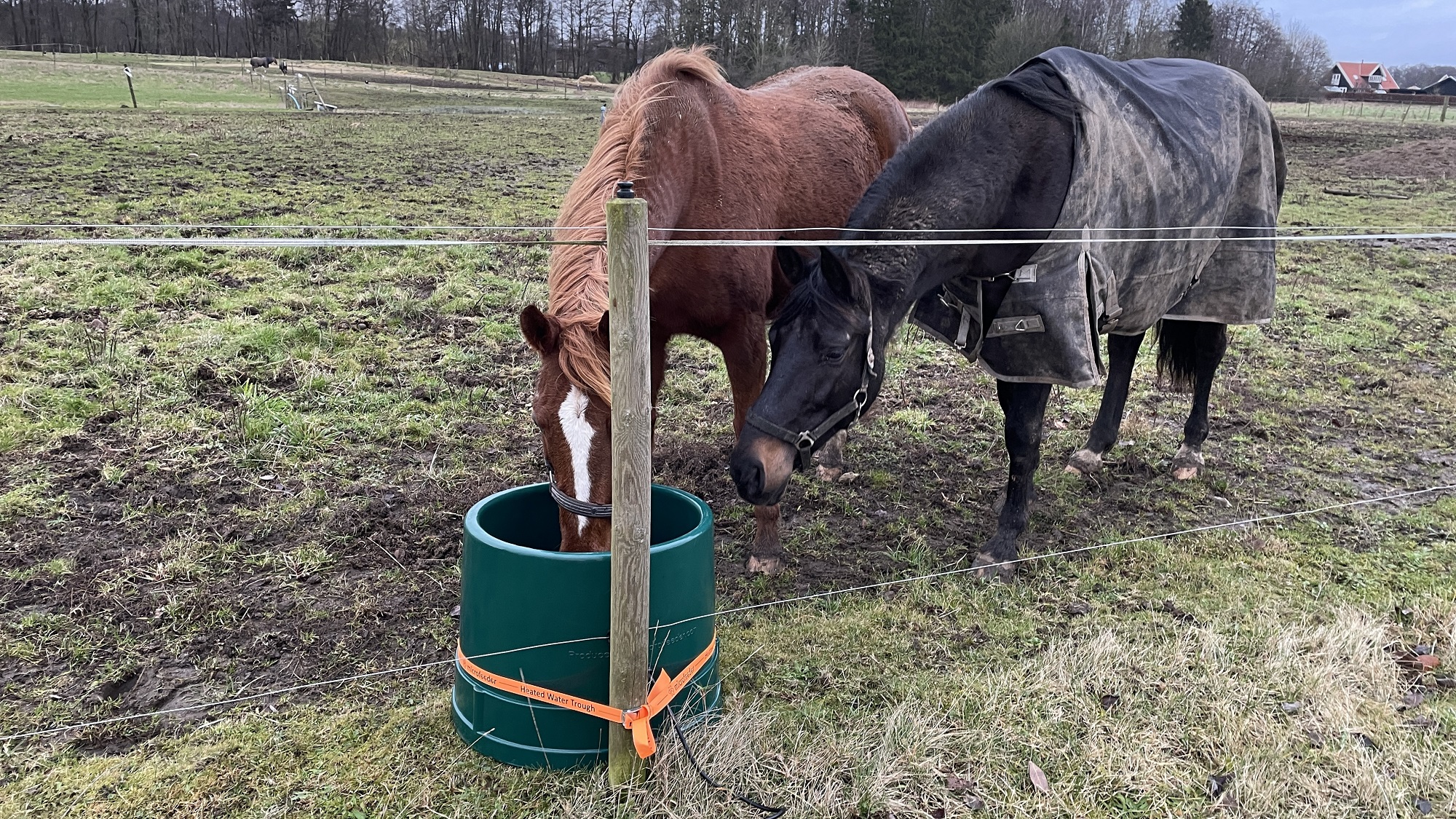 We are ready for a new winter season with a heated water trough that offers a whole range of improvements! We have built-in a thermostat that starts the heating when the ambient temperature is 13°C or below, and this means that the drinking water is kept tempered with a minimum of energy consumption. Temperate water is better for the horses' vulnerable digestive system than cold water. We have also skipped the transformer, which means that the trough is delivered ready to connect to an electrical outlet - and the trough is of course CE marked, which means that it has been tested and approved in relation to safety. It is produced in a nice dark green color and comes with a strap for attachment to a fence post.