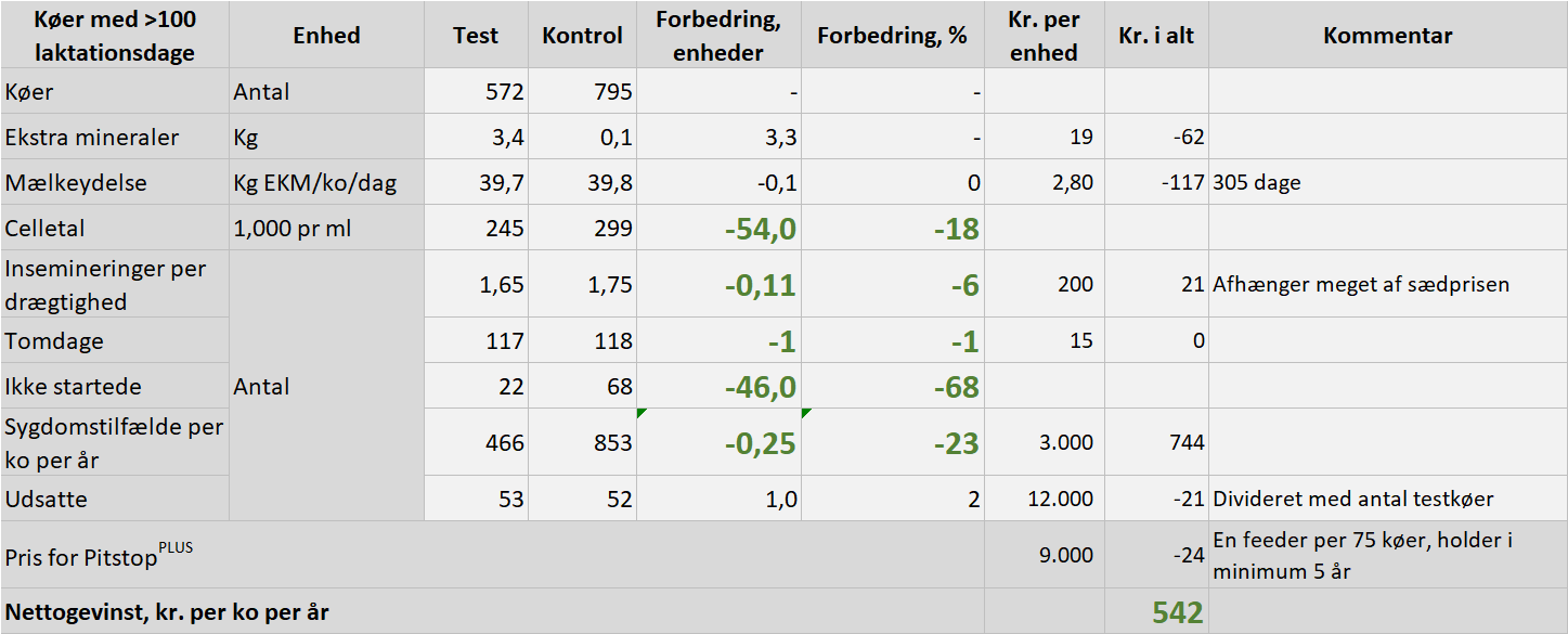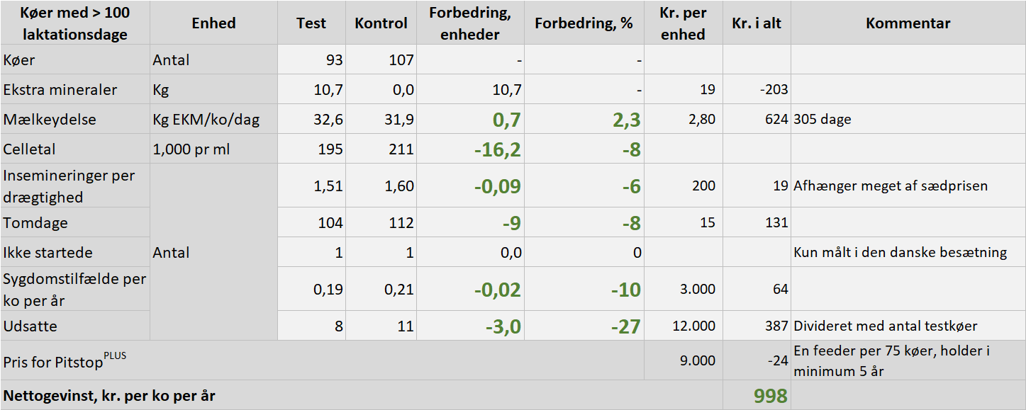 Effekten af PitstopPLUS-konceptet er testet under praktiske forhold i seks besætninger i Tyskland, Letland, Litauen og Danmark med i alt ca. 2.700 malkekøer: